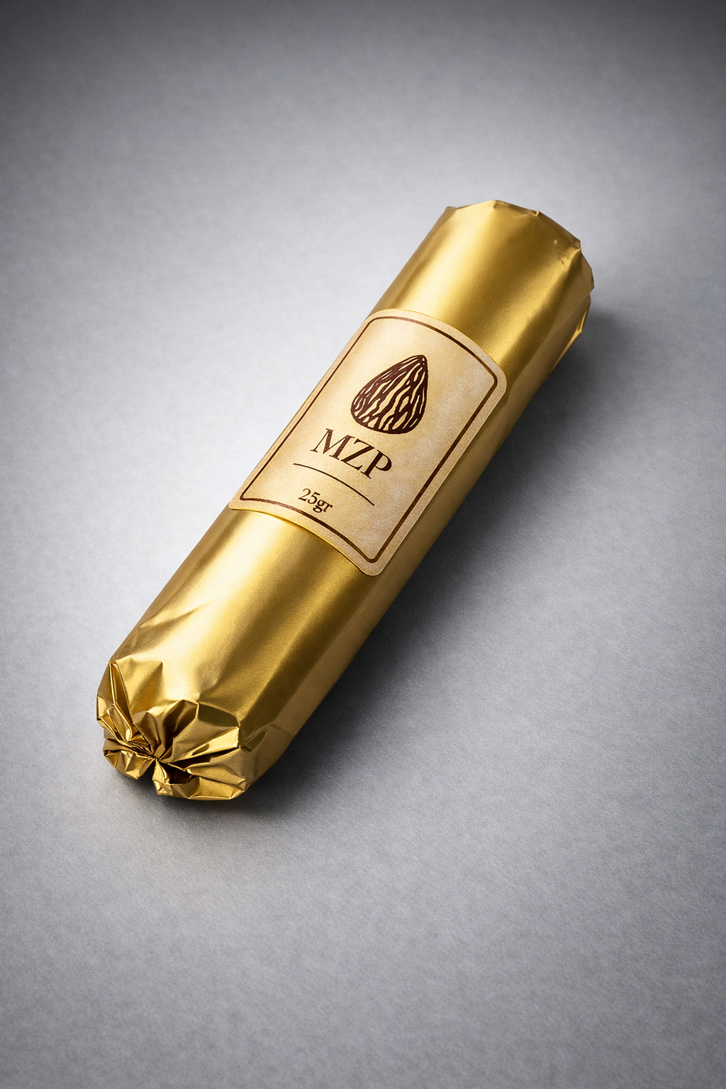 Chocolate MZP com 50% de marzipan, 25g — textura macia, sabor intenso de amêndoas e acabamento premium em embalagem sofisticada. 🍫✨